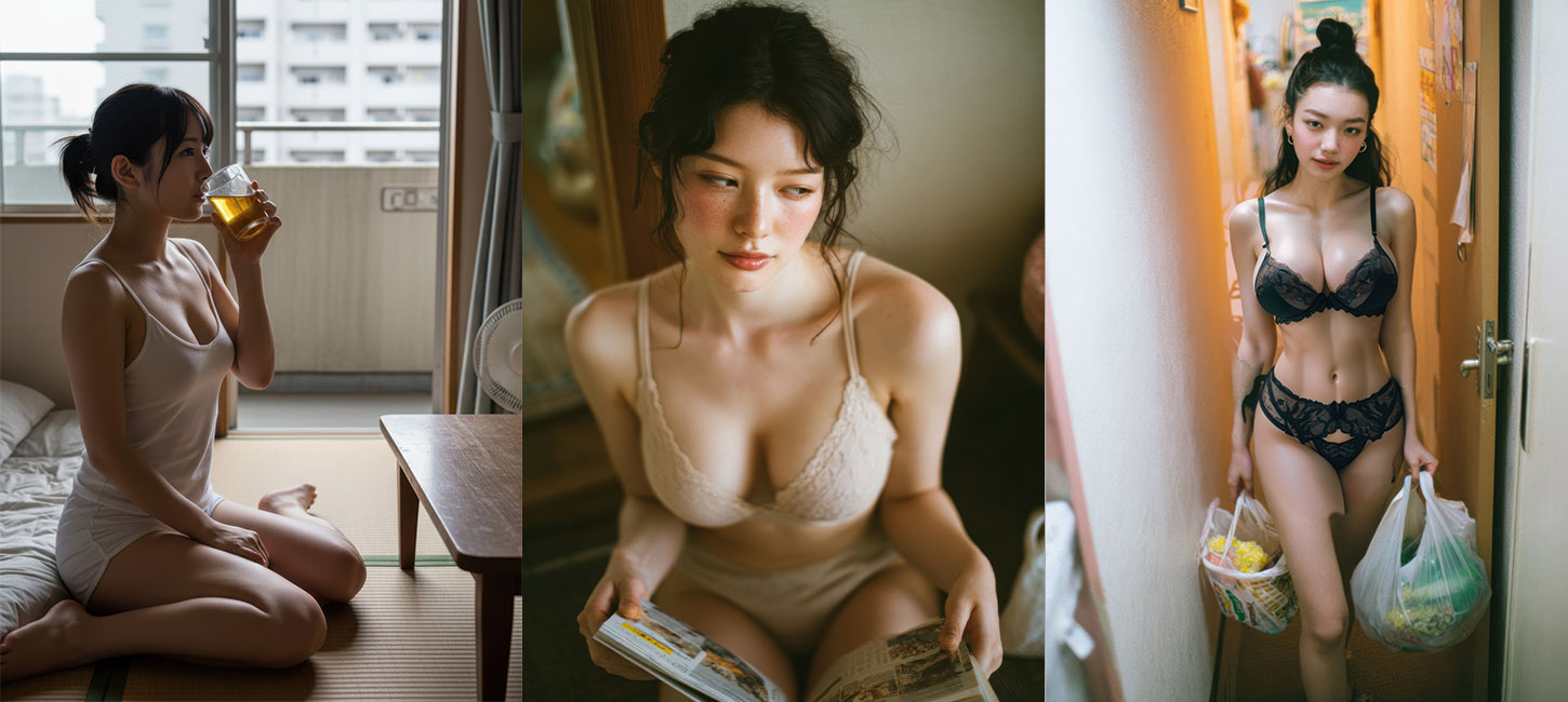 実写、Ai、3DCG、Photoshopを駆使して、女性の美しさと非日常の世界を表現しています。