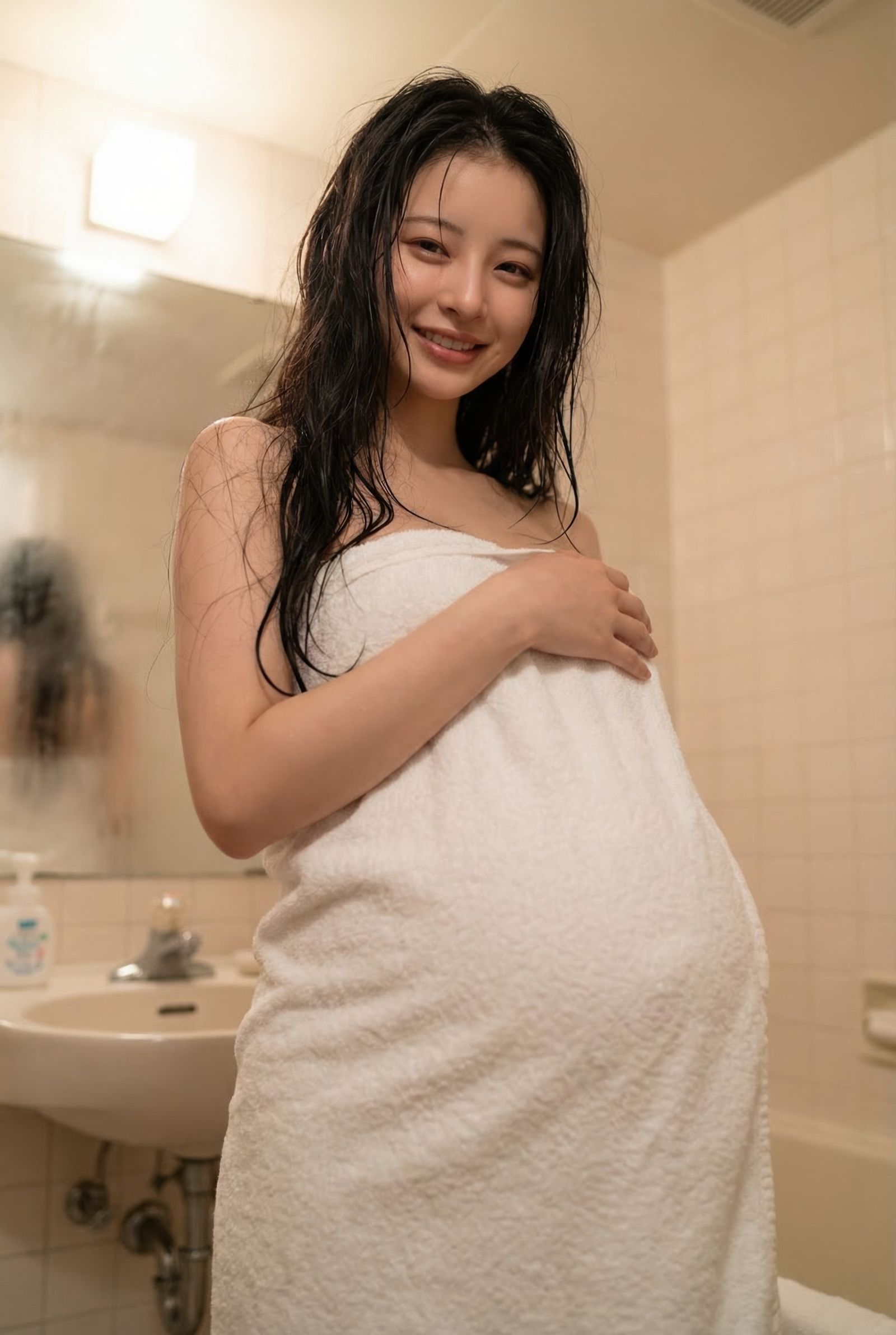 大きくなったお腹を愛おしそうに撫でる彼女の姿は、母となる強さと、夫である「あなた」だけに見せる妻としての顔が同居しています。