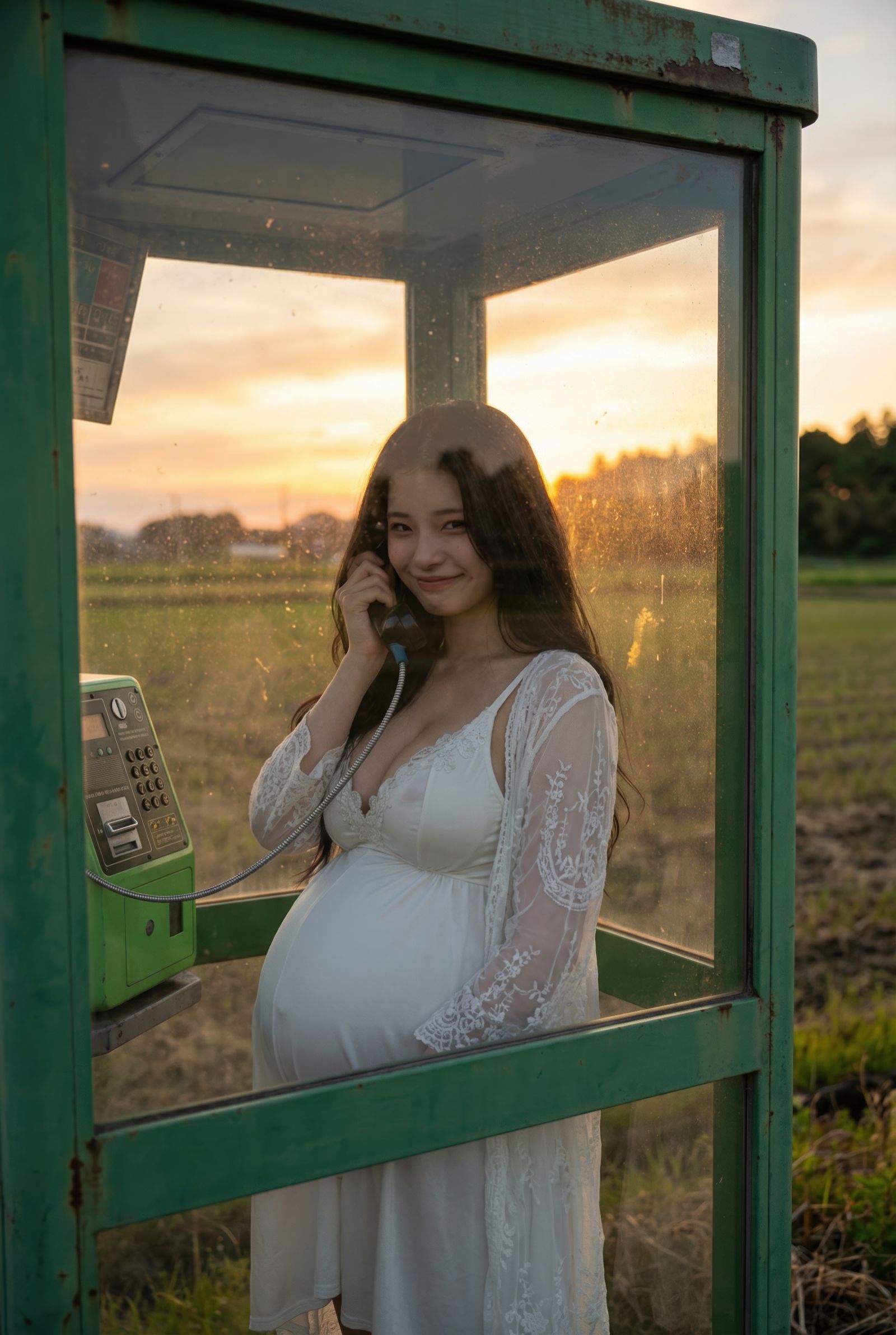 寂れた景色の中に佇む美しい妊婦は、マタニティドレスをまとい、 そのふっくらとした妊娠中のお腹には命を宿しています。