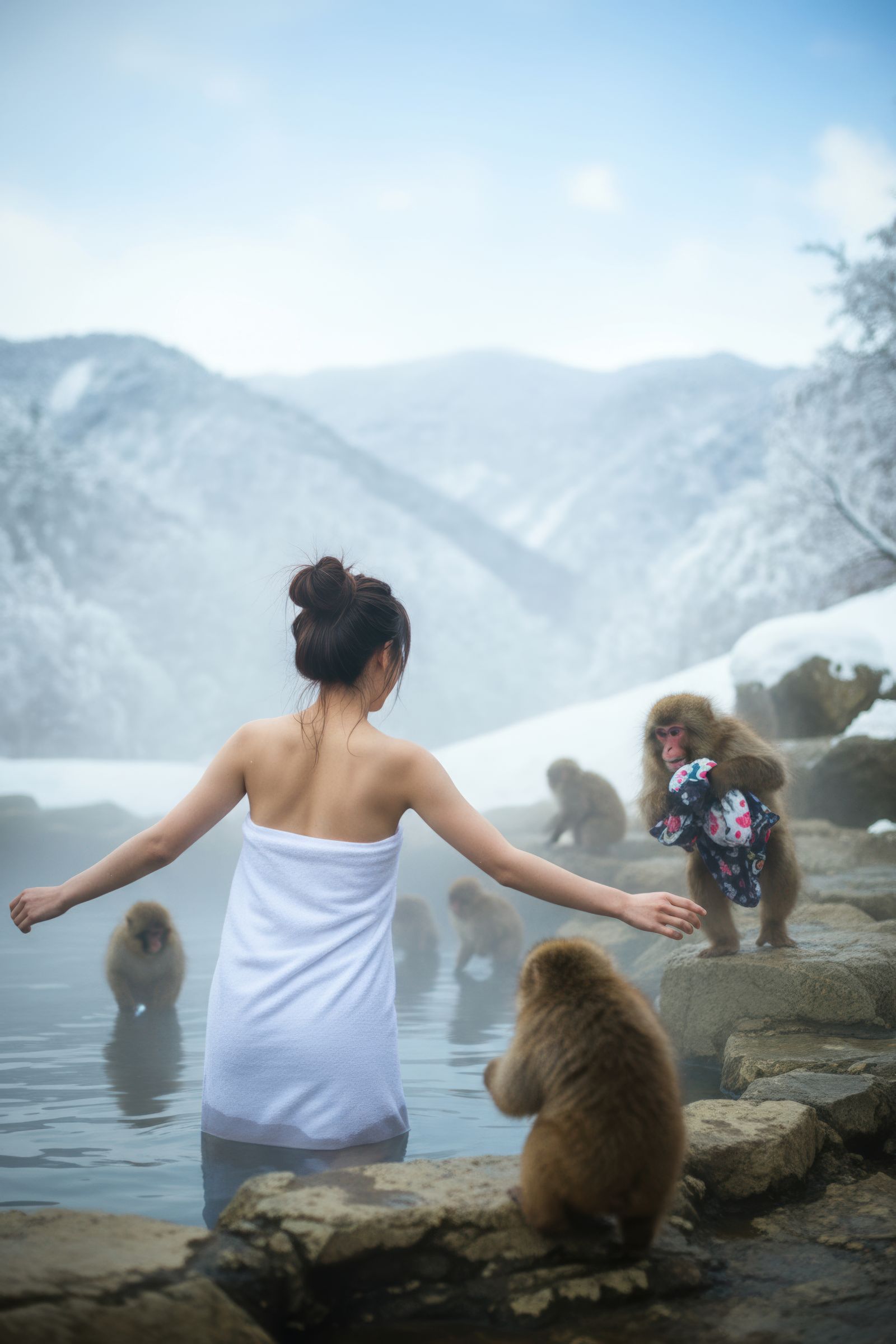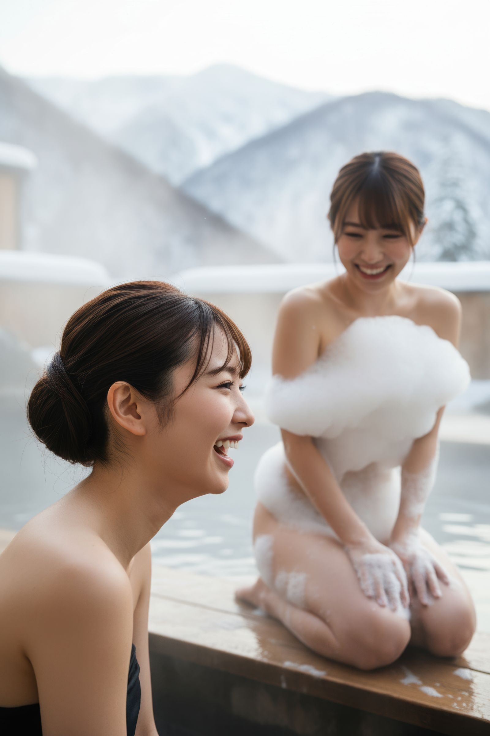 このAIグラビア写真集は、雪深い山奥の露天風呂で水着を着用して過ごす美女たちの、自然な姿を撮影しております。